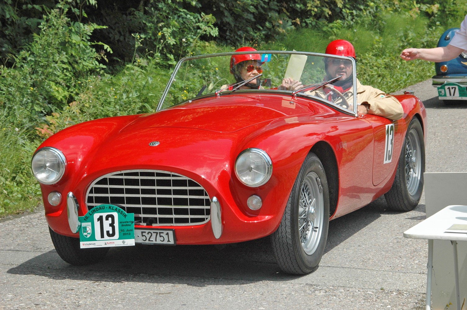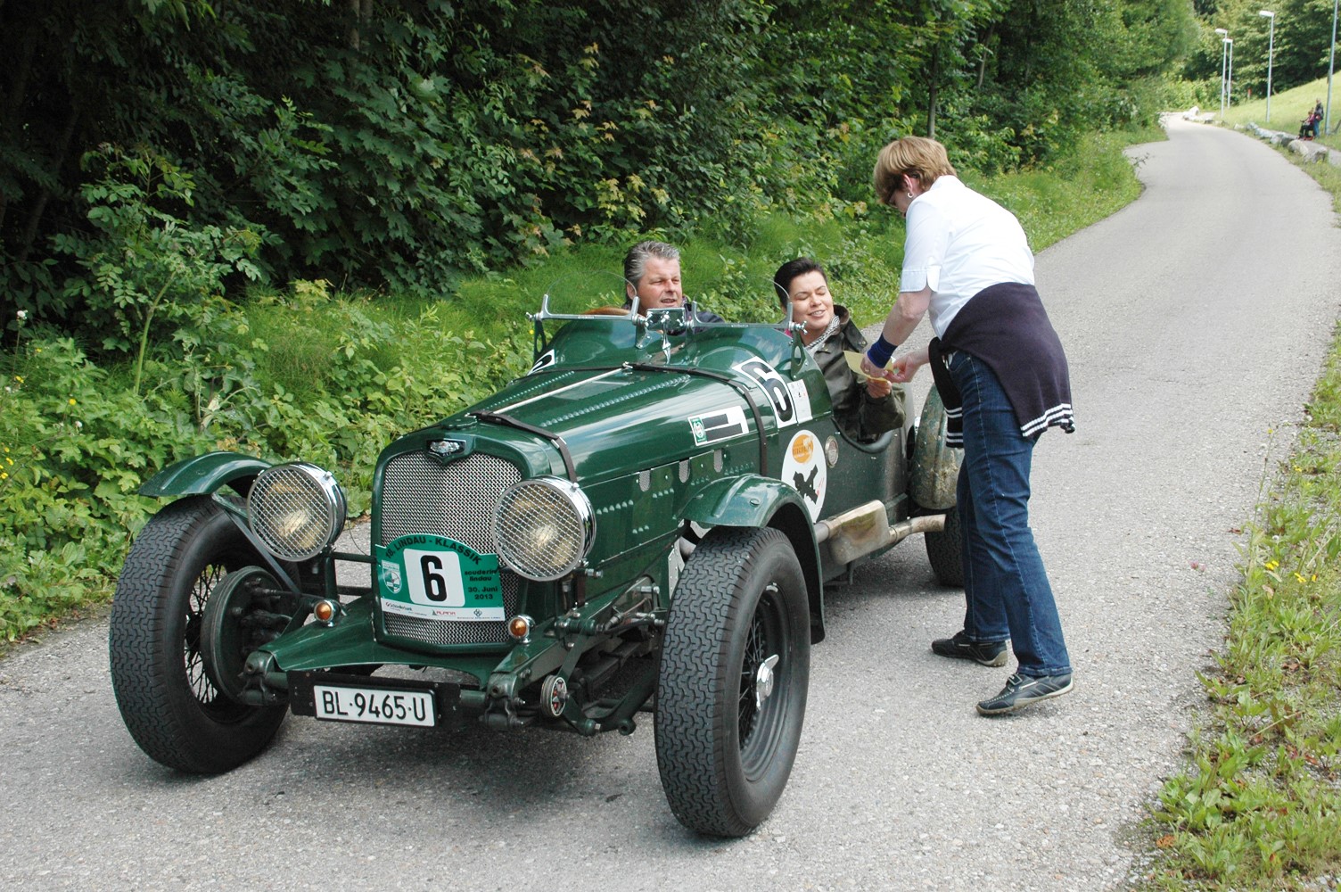Nach Papierabnahme und einem kleinen Frühstück im Cafe Nana, wurden die Teilnehmer von Ernst Laufer und Bürgermeister Karl Schober in Lindau begrüßt. Von den Automarken war wieder eine große Vielfalt im Starterfeld vertreten. Alfa Romeo, AC, Alvis, BMW, Ford Mustang, Jaguar XK 140 und E-Typs, MG, Mercedes, verschiedenste Typen von Porsches, Triumph, Volvo war alles vertreten. Super besetzt war wieder die Klasse bis 1940. Vom Alvis, MG über Triumph war alles da. Sehenswert auch der Bentley Speed Six mit 4,5 Liter Maschine und 180 PS Bj. 1934. Ein akustischer Hingucker war der Woolseley, ein englischer Rennwagen aus dem Jahre 1933. Der 6 Zylinder mit 1,6 l Hubraum leistet 89 PS und war früher ein reines Renngerät. |